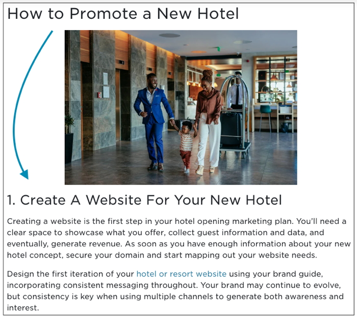 This could be the underlying reason why we’ve tracked one particular article, Promote Your Hotel Before It Opens – 10 Strategies For Success, as our most popular blog post to date. Notice TravelBoom Success Manager Alyssa Fate’s first recommendation on the list: